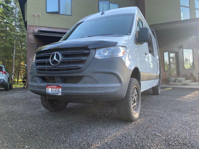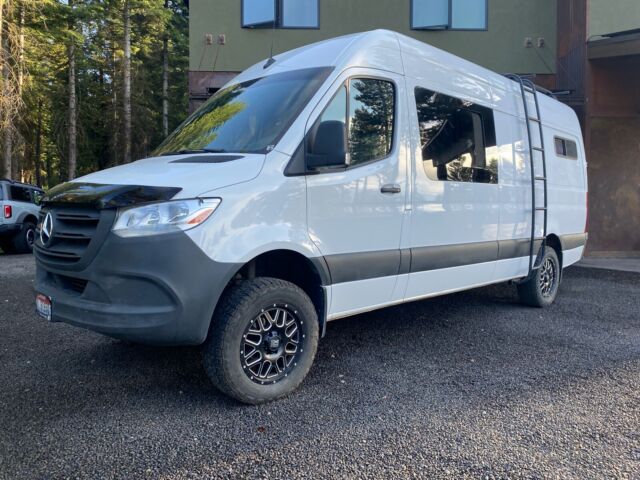 Very Nice, I am the only person that has owned the Van. It has always been kept in the garage and only used for camping trips and not a daily driver. This build was orchestrated by ACCESS VANS in Boise, IDAHO. Sleeps 3-4, seats 5 with shoulder harnesses. E-track through floor for various options and adjustment of 3 passenger seat. Upgraded XO 18â wheels and 10 ply cooper discover tires. JVC dvd stereo system with Rockford fosgate 6x9 punch speakers in back doors. L-track runs throughout making van pretty versatile. Isotherm fridge, 2 burner stove and sink by Dometic, Solar setup that allows 270 watts to plug into roof plug by rack system, aluminess ladder to rhino platform rack, diesel espar heater, thinsulate insulation throughout and sound deadening. Laminate flooring and custom cabinets Swivel seats up front on both captains chairs. Lots of storage under bottom bed, 2 mule bags and overhead storage above drivers, 20 gallon fresh water tank under bottom bed that also house pro watt 2000 inverter. Max air fan This van can hold up to 4 29â mtn bikes under the bed. 3 usb charging stations. This van has been amazing for a family of 4 and has 25k miles with recent full service from dealership. Solar panels fold up easily so are out of the way when not needed but allows off grid living to maintain fridge, lights and heater. The basics on the van has lane assist, folding mirrors, backup camera and towing package with v6 diesel power. Custom seat covers and big deflector as well as trickle charge plug in for alternate battery when van is not in use. This van is 4 season and can go anywhere. I am willing to get van to Boise for pick up or would be willing to deliver for a fee (fuel and plane ticket back home). Any questions please call 307-699-4142307-699-4142 Thanks